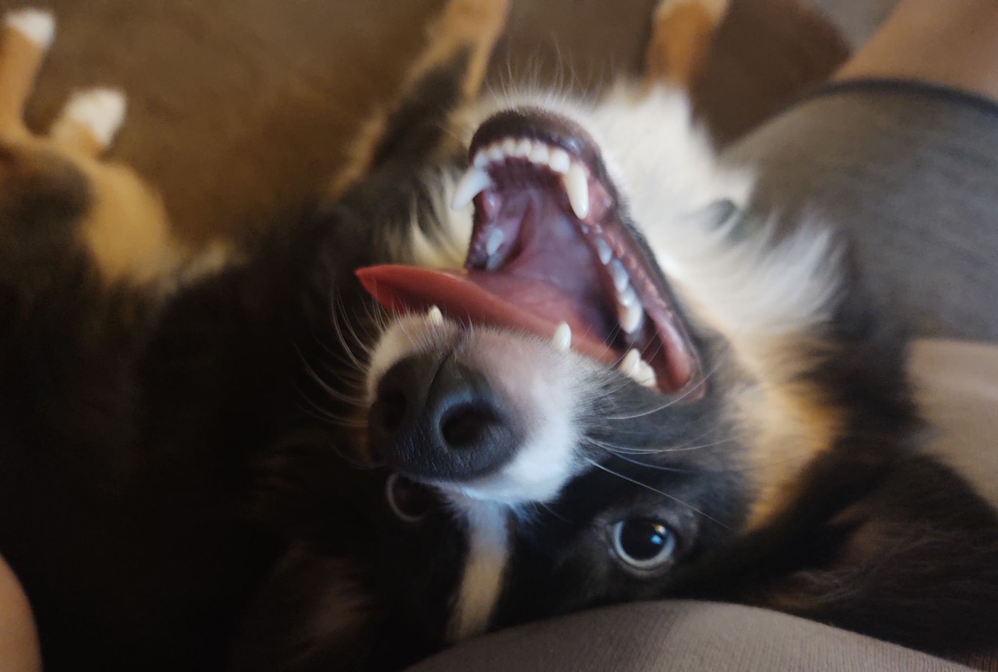 There’s a lot of love between these two - right from the beginning! Lupin is incredibly patient and gentle. He really looks out for her, even helping her up the stairs with his nose when we first brought her home. They certainly get a lot of exercise playing chase and wrestling. We’re working on teaching Lily to not chomp on the cats tail Lol. She is a gem and we are loving these puppy days!” ~ Lesli Bellamy